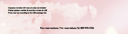 • Introductory scuba lesson in pool • Non-motorized water sports • Access to Fitness Center • Nightly Entertainment • Amphitheater Shows • Admission to Nightclub (drinks not included) • Kid’s Club • Tennis Daytime Usage • Bicycle usage on Property • Shuttle Service on Property • Los Mangos Executive Golf Course: 9 Hole green fee or half hour tour clinic per stay. |